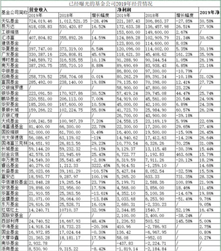 伴随着上市公司2019年年报的披露,让越来越多的基金公司2019年的经营情况得以曝光,不少公司受益于去年的牛市行情,经营情况甚好。
