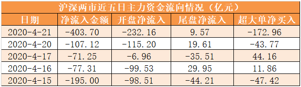 今日沪深两市主力资金开盘净流出232.16亿元,尾盘净流入9.57亿元,两市全天资金净流出403.7亿元。