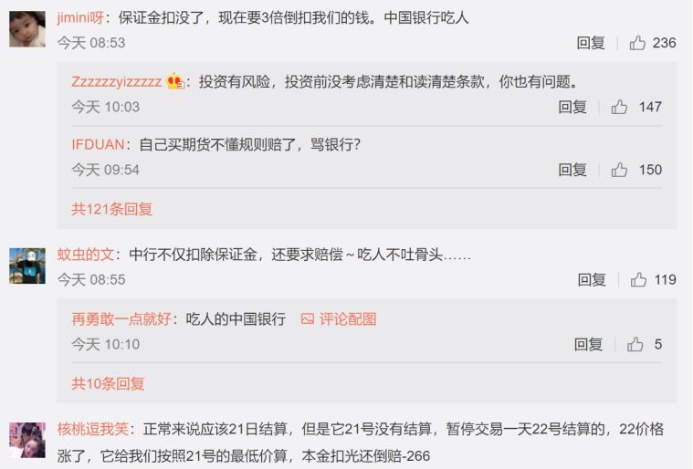 有投资者愤怒表示:“中行原油宝设计规则或存在重大缺陷,导致投资者巨额亏损,我们打算去集体诉讼。”