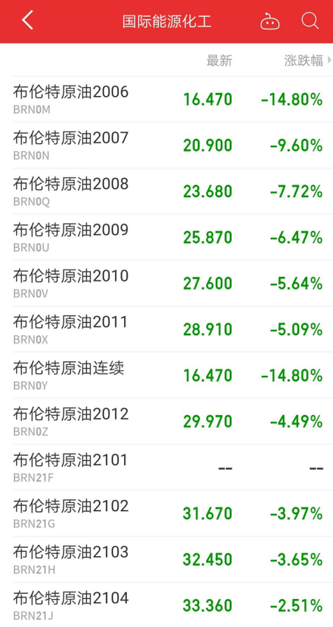 4月22日午间13点左右,布伦特原油期货系列合约集体杀跌,最猛跌超14%。