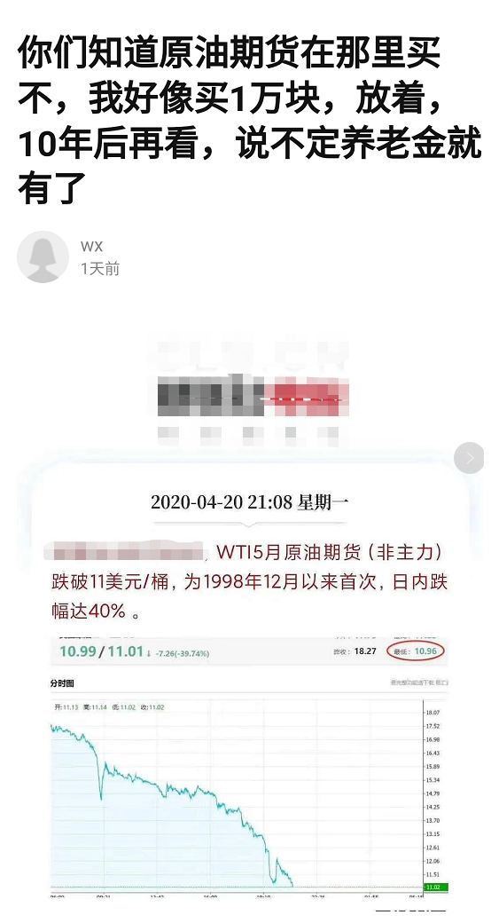 4月20日晚原油期货价格大跌305.97%,收于每桶-37.63美元,首次收于负值,对大洋彼岸的熔断和暴跌,中国网民喜闻乐见,但是万万没想到,这次期货油价暴跌之时,最受伤的是中国投资者。
