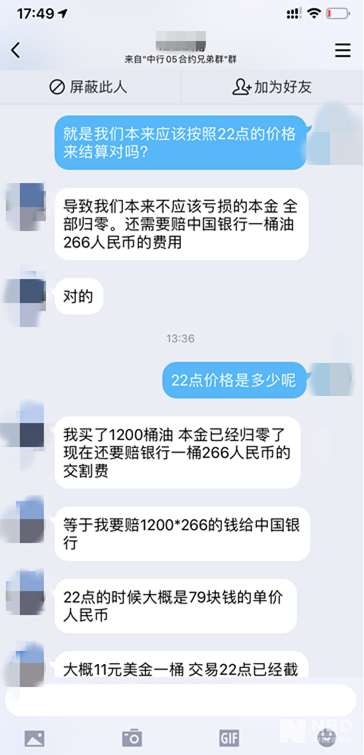 另外,网络有张截图显示,投资者的开仓成本为194.23元/桶,本金为388.46万元,目前总体亏损920.7万元,倒欠银行532.24万元。这部分穿仓亏损银行已要求投资者赔偿。但该图的真实性尚未得到中国银行回复。