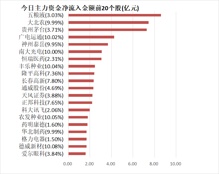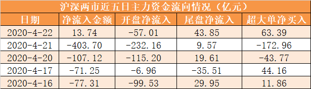 今日沪深两市主力资金开盘净流出57.01亿元,尾盘净流入43.85亿元,两市全天资金净流入13.74亿元。