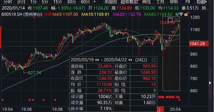 就在3月份,贵州茅台股价一度跌破千元大关,3月19日盘中最低达960.1元/股,此后便一路震荡上行,从3月19日至今,贵州茅台涨幅已达23.46%。
