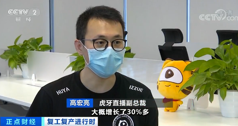 虎牙直播副总裁 高宏亮:我们整体的用户量大概增长了30%多,观看时长增长了50%多,整体的增长非常好,美食直播增长了50%多,兴趣类的分享和教学,小孩子们也很喜欢看。