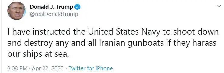 美东时间21日周三美股盘前,特朗普在社交媒体发帖称,他已经指示美国海军,一旦有任何伊朗的炮艇在海上骚扰美军,就开炮还击,摧毁所有这些舰只。