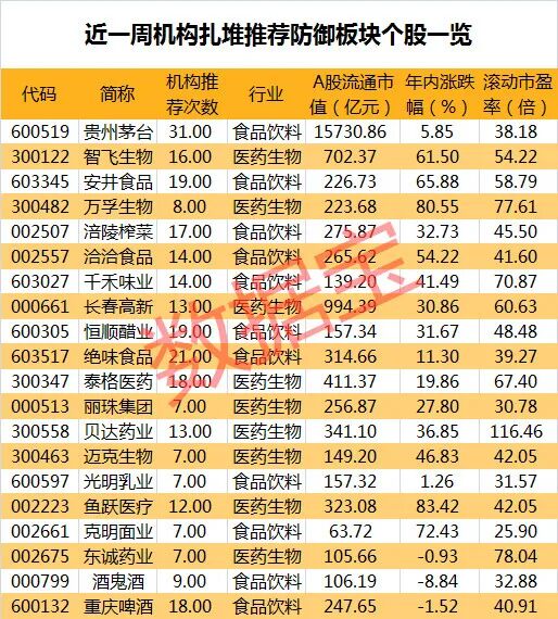 机构扎堆推荐防御板块个股,这些股受重点关注
