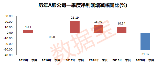 从已发布季报或预告公司来看,一季报业绩表现整体不容乐观。证券时报·数据宝统计显示,2020年一季度1851家公司净利润合计仅有786.18亿元(预告以中值来计算),同比下滑31.32%,创下了历史最差的表现,其中有76%的公司表示业绩变动与新冠疫情有密切关系。