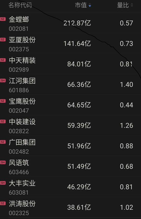 沪深装修装饰板块市值TOP10(来源:富途牛牛APP)
